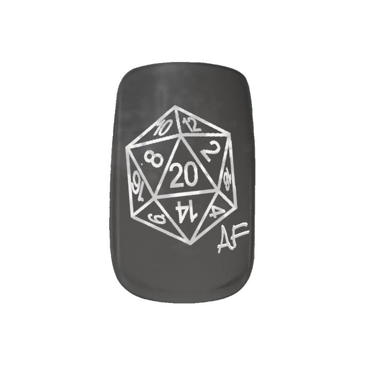 Silver D20 Crit Af Pnp Tabletop Role Player Dice Minx Nail Art Zazzle